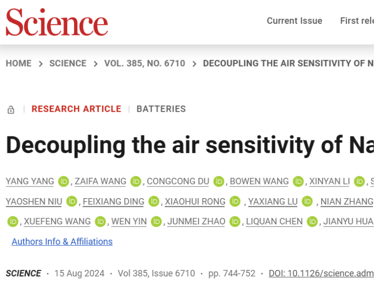 查看詳情 +2024年8月15日,中科海鈉科研領(lǐng)軍者胡勇勝研究員團隊在全球頂尖科學(xué)期刊《Science》上發(fā)布其最新研究成果《Decoupling the Air Sensitivity of Na-Layered Oxides》,這一突破性發(fā)現(xiàn)為鈉離子電池的商業(yè)化進程提供了重要的解決方案,再次彰顯了我國在鈉離子電池技術(shù)領(lǐng)域的國際領(lǐng)先地位。...